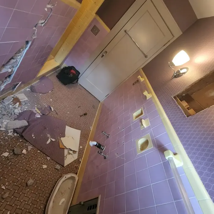 This full bathroom renovation was completed from demolition to final finishes, transforming an outdated space into a modern, functional, and elegant bathroom. The project included full demo, plumbing and electrical upgrades, waterproofing, and installation of a custom walk-in shower with large-format wall tile, hex tile flooring, and a frameless glass enclosure. We installed a modern floating vanity with a stone countertop, LED mirror, updated lighting, new fixtures, and fresh trim and paint throughout. The result is a clean, contemporary bathroom with improved layout, durability, and a high-end finish built to last.